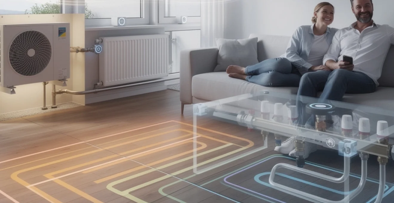 Les planchers chauffants hydrauliques et électriques offrent un confort thermique remarquable grâce à leur diffusion homogène de chaleur à basse température. Toutefois, leur inertie importante impose une régulation particulièrement soignée. La régulation zonale, pièce par pièce ou par groupe de pièces, est devenue incontournable pour adapter le niveau de chauffage aux usages réels : chambres plus fraîches, salle de bains plus chaude le matin, ou encore réduit nocturne automatique. Bien configuré, un plancher chauffant à régulation zonale combine confort maximal et consommation optimisée.